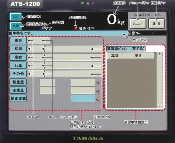 車番登録 | 最大10000件(車番、項目4種、空車重量、最大重量) |